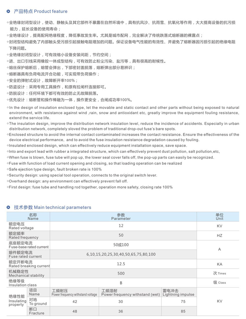 公司主营产品户〈 内〉外真空断路器、多〈少〉油断路器、隔离开关、跌落式熔断器、避雷器、绝缘子、高压熔断器、穿墙套管、负荷开关、电站金具等产品。